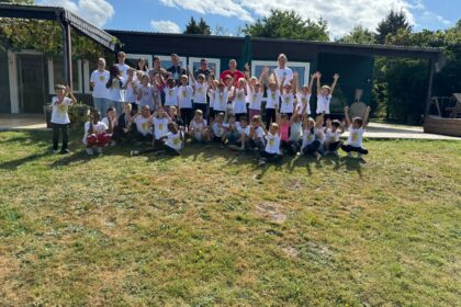 „Strahlende Gesichter nach einem sportlichen Vormittag: Die dritten Klassen der Gerhart-Hauptmann-Schule zu Gast beim Alsfelder Tennis Club im Rahmen des HTV-Grundschulcups.“