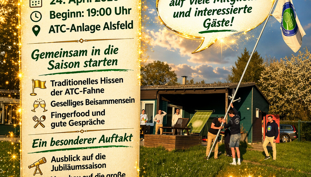 Aktualisiert am 17. April 202617. April 2026Allgemein Saisoneröffnung 2026 Karsten Krämer wir laden euch herzlich zur diesjährigen Saisoneröffnung auf unsere Tennisanlage ein:Freitag, 24. April 2026, 19:00 Uhr